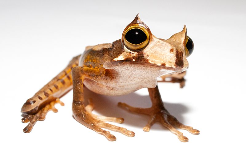 The horned marsupial frog is an arboreal species native to the tropical moist lowland forests and montane cloud forests of Colombia, Costa Rica, Ecuador, and Panama. Their upper eyelid has a triangular peak, giving them a quizzical, alert appearance. This species lays the largest known eggs of any amphibian! Females brood their eggs in a pouch on their lower back until they emerge as fully developed froglets.