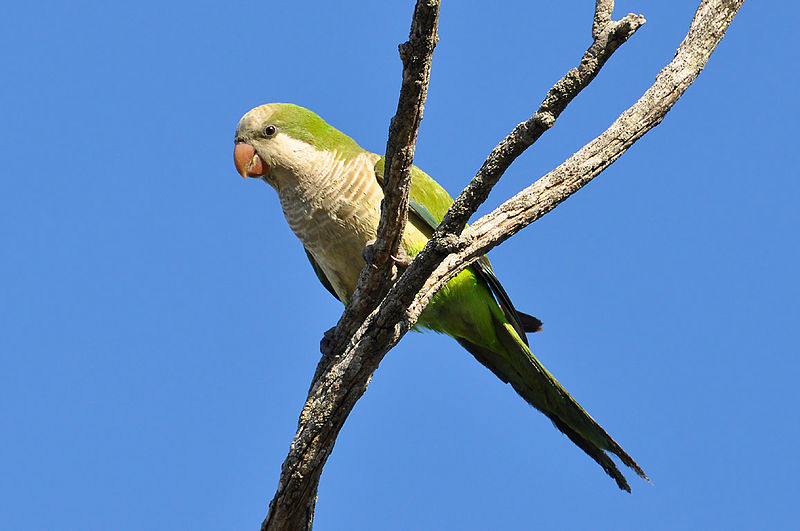 Also commonly known as the Quaker Parakeet, these small parrots originated in South America but exist in self-sustaining feral population throughout the world, most likely a result of released or escaped pets. They are considered agricultural pests in many places and the possession and selling of these birds is highly regulated. Nonetheless, they are extremely intelligent, engaging pets that are able to develop large vocabularies of words and phrases.