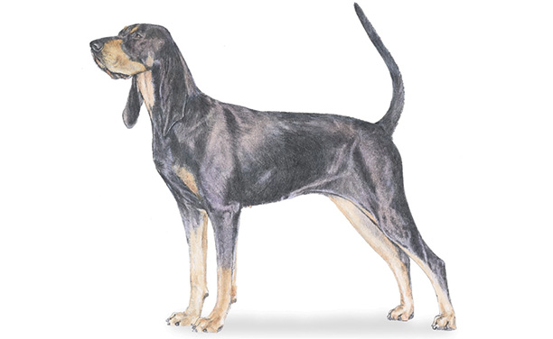 The Black and Tan Coonhound is an older American breed of dog, descended from a crossing of Bloodhound and Black and Tan Virginia Foxhound. Bred to trail and tree raccoon, they are friendly family dogs who love to be with their people and are calm in the house. They need moderate daily exercise, and may need to be trained against their instinct to tree and bark upon seeing smaller animals. Their short coats are low-maintenance.