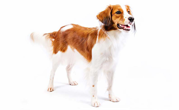 Nederlandse Kooikerhondje weigh 20-30 pounds, stand 14-17 inches tall, with females slightly shorter. Their life expectancy is 12-15 years. While an overall healthy and long-lived breed, they come from a small genetic stock and are susceptible to several hereditary illnesses that should be checked for. They have a long orange and white coat with a white plumed tail and a Spaniel-like appearance. Regular grooming (which most Kookerhondje enjoy), with baths are required as needed. Their nails should be clipped or ground regularly and they should have their teeth brushed, as well.