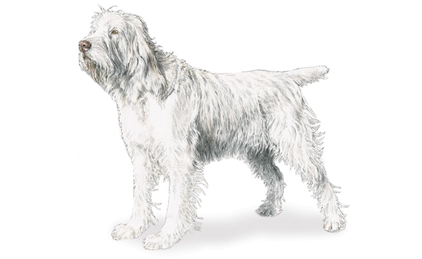 Oh, to be as handsome and utilitarian as the charming Spinone Italiano! They are Italy’s all-purpose hunting dog, capable in almost any terrain as a skilled hunting partner and retriever. Their wiry, dense coat protects them from the cold and the thorns as they accompany their human companions at a comfortable pace, for that is what they are bred to do. They are thought to be descended from course haired Italian Setters, the White Mastiff, and perhaps French Griffons. The Spinone loves its family but is naturally cautious so special attention should be paid to early socialization and training. Their wash and wear coat is best in its natural state but does need occasional brushing and stripping.