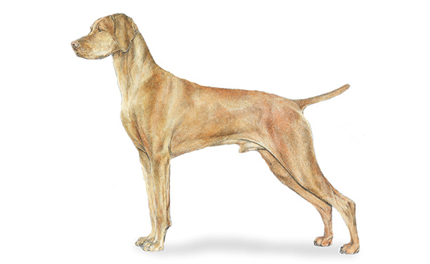 The striking and energetic Vizsla descends from dogs used as companions and hunters by the Magyar hordes that settled in what is known today as Hungary. There are etchings of Vizsla type dogs that date back over a 1000 years. This Sporting Group member is a double duty dog, naturally suited to both pointing and retrieving. Vizslas are popular in both the field and show ring due to their agreeable nature and high trainability. They are showy, well behaved, and loveable family pets as long as their exercise and training needs are met. These needs can certainly occur with the scope of many fun family activities. Their short, rust colored coat needs little more than occasional brushing to remove shed hair.